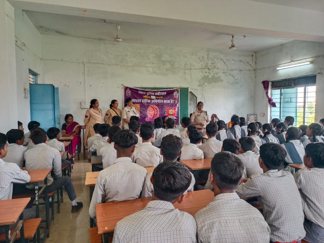 इसी क्रम में महिला थाना कवर्धा द्वारा शासकीय माध्यमिक शाला कैलाश नगर कवर्धा में विशेष कार्यक्रम आयोजित किया गया। इसमें छात्र-छात्राओं को साइबर सुरक्षा के साथ-साथ महिला एवं बाल संरक्षण से जुड़े महत्वपूर्ण मुद्दों पर जागरूक किया गया। बाल विवाह, दहेज प्रथा, घरेलू हिंसा, छेड़छाड़, पोक्सो एक्ट तथा **गुड टच-बैड टच** जैसे विषयों पर विस्तारपूर्वक जानकारी दी गई। शिक्षिकाओं को महिलाओं से संबंधित अपराधों के विरुद्ध विधिक प्रावधानों और सुरक्षा उपायों से अवगत कराया गया।