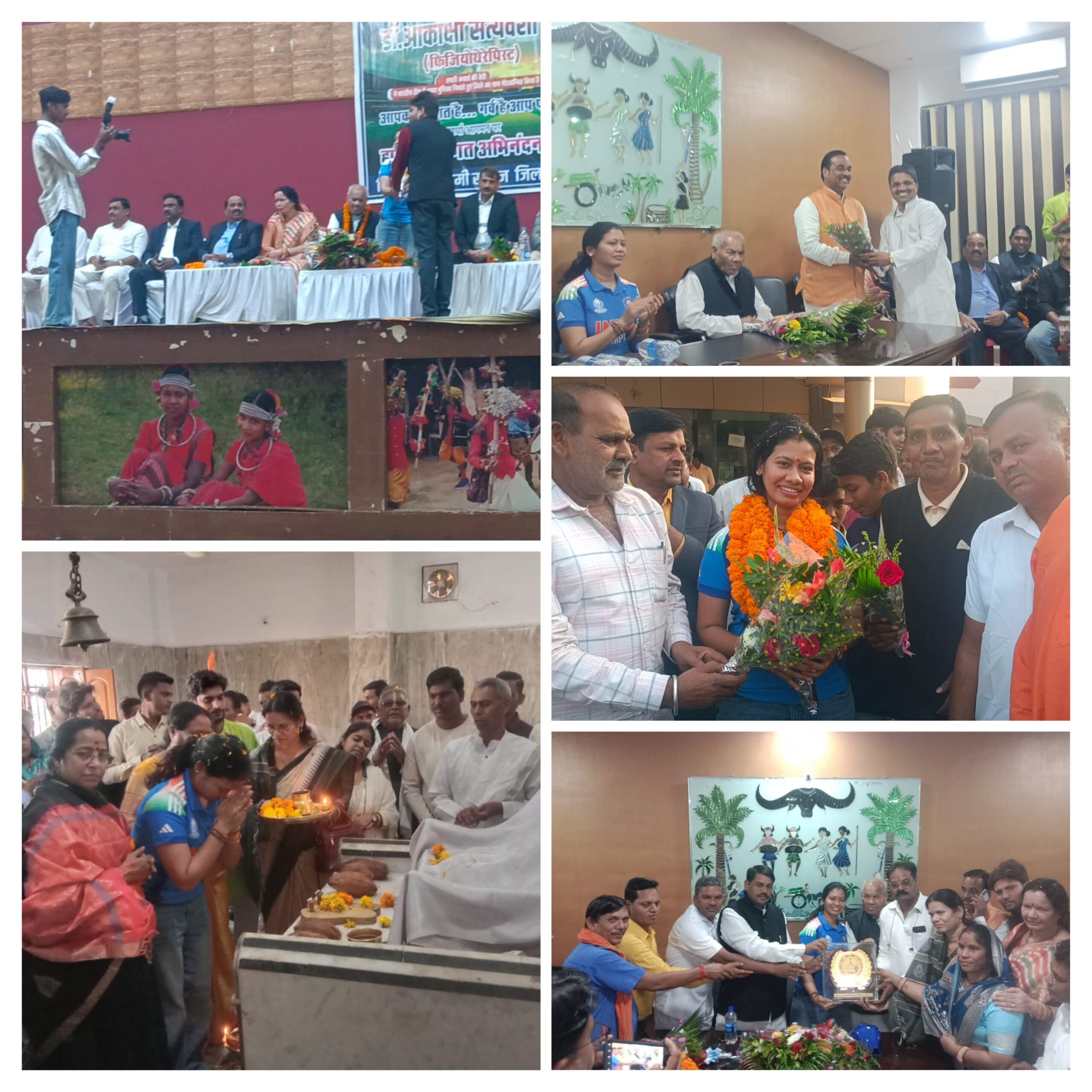 कवर्धा -: भारतीय महिला क्रिकेट टीम विश्व विजेता की फिजियोथैरेपिस्ट डॉक्टर आकांक्षा सत्यवंशी आज कवर्धा प्रवास पर थी आपको बता दें कवर्धा डॉक्टर आकांक्षा सत्यवंशी की पैतृक ग्रह नगर है आज विश्व विजेता की ख्याति प्राप्त कर अपने पैतृक नगर में डॉक्टर आकांक्षा की आगमन हुआ था तो कवर्धा नगर डॉक्टर आकांक्षा की स्वागत में आतुर दिखाई दिए।