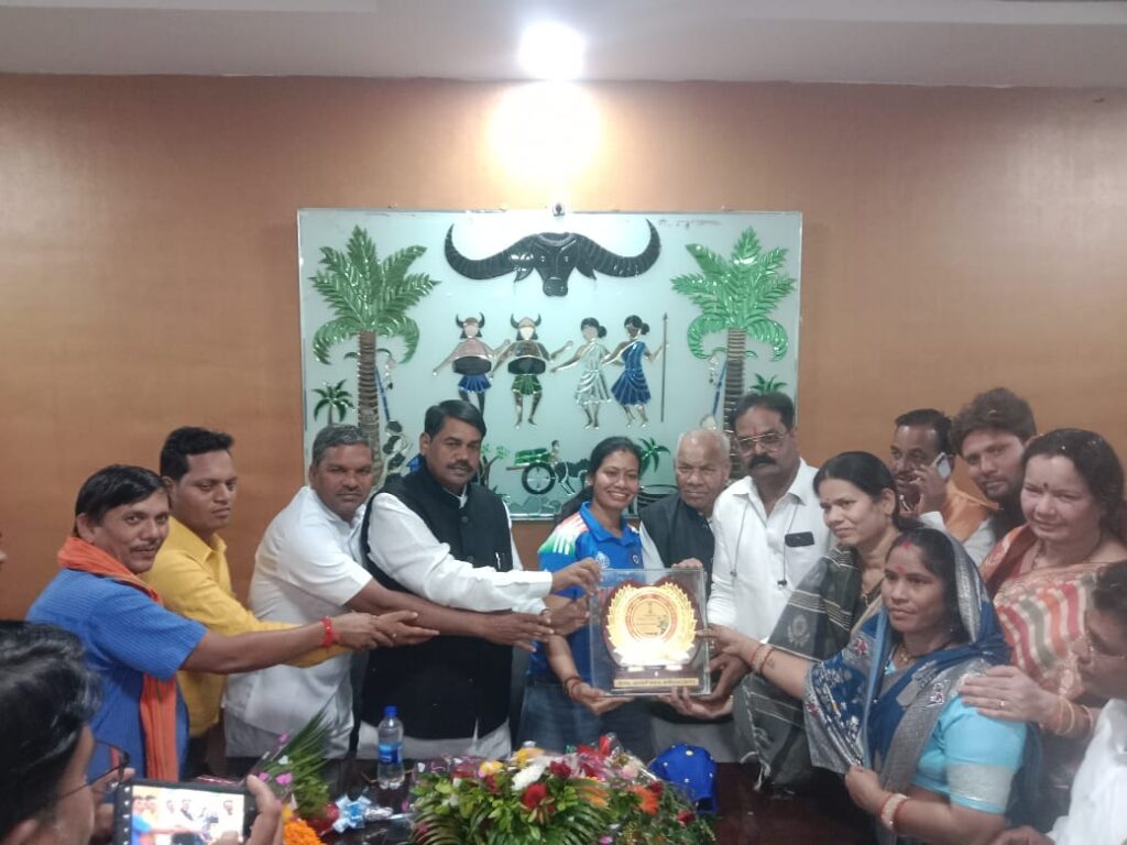 तत्पश्चात डॉक्टर आकांक्षा की काफिला महाविद्यालय परिसर ऑडिटोरियम में पहुंची जहां विभिन्न खेल से जुड़े हुए बड़ी संख्या में बच्चों व स्कूल के खिलाड़ी बच्चे के साथ जिला पंचायत उपाध्यक्ष कैलाश चंद्रवंशी जिला कलेक्टर गोपाल वर्मा जिला अध्यक्ष राम प्रसाद मिरी अगम दास अनंत सीमा अनंत के अलावा समाज के गणमान नागरिक भी उपस्थित थे जहां भारी फूल मालाओं के साथ डॉक्टर आकांक्षा की स्वागत किया गया सम्मान दिया गया इस संबंध में उद्बोधन करते हुए कलेक्टर गोपाल वर्मा ने बड़ी उपलब्धि बताते हुए चुनौती भरे कार्यों का तारीफ किया वहीं आकांक्षा ने बच्चों को प्रेरित करते हुए सफलता के पीछे अपनी जीद्द को बताई साथ ही अपने माता-पिता भाई-बहन एवं परिवार जनों का सहयोग को भी क्रेडिट दिया इस तरह जगह-जगह डॉक्टर आकांक्षा का अनेक सामाजिक संगठन के अलावा राजनीतिक संगठन एवं स्वयंसेवी संगठनों के द्वारा स्वागत किया गया ठाकुरपारा में ठाकुर समाज द्वारा पगड़ी पहनाकर सम्मान किया गया।