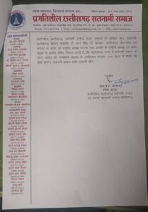 ए मांग ला लेके बीते दिन प्रगतिशील सतनामी समाज के प्रदेश अध्यक्ष के अगुवाई मं संगठन के जम्मो पदाधिकारी मन रायपुर प्रेस क्लब मं कांफ्रेंस करके कांग्रेस अऊ भाजपा दुनो दल के प्रदेश अध्यक्ष, राष्ट्रीय अध्यक्ष अऊ छत्तीसगढ़ के मुख्यमंत्री के नाम पत्र लिखके मांग करे हें।