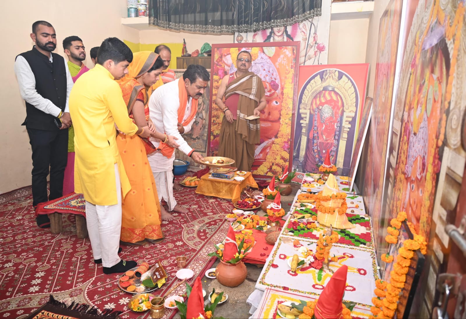 विशेष पूजा अनुष्ठान में उप मुख्यमंत्री श्री शर्मा के साथ उनकी माता श्रीमती कृष्णा देवी शर्मा, धर्मपत्नी श्रीमती रश्मि शर्मा,सुपुत्र श्री अभिनव शर्मा शामिल हुए।