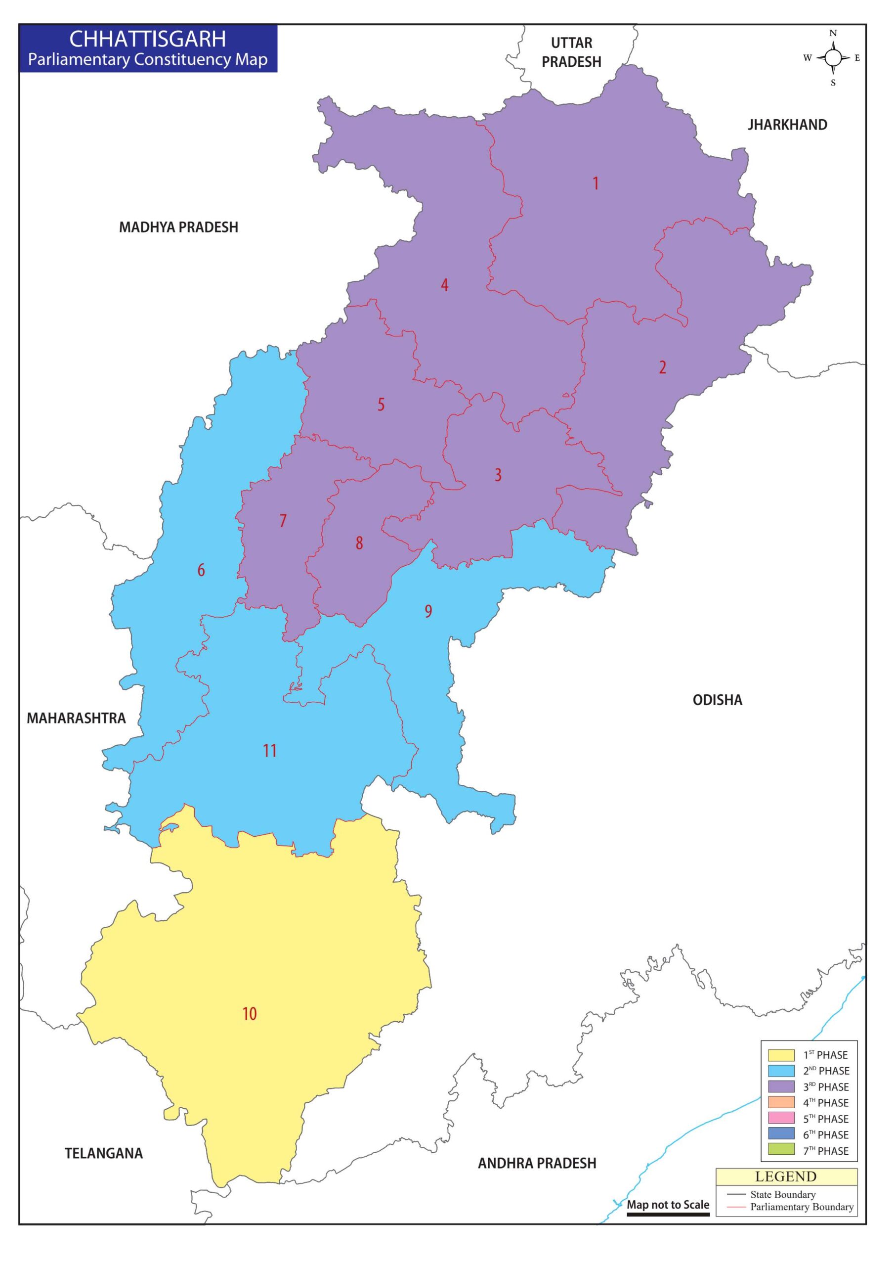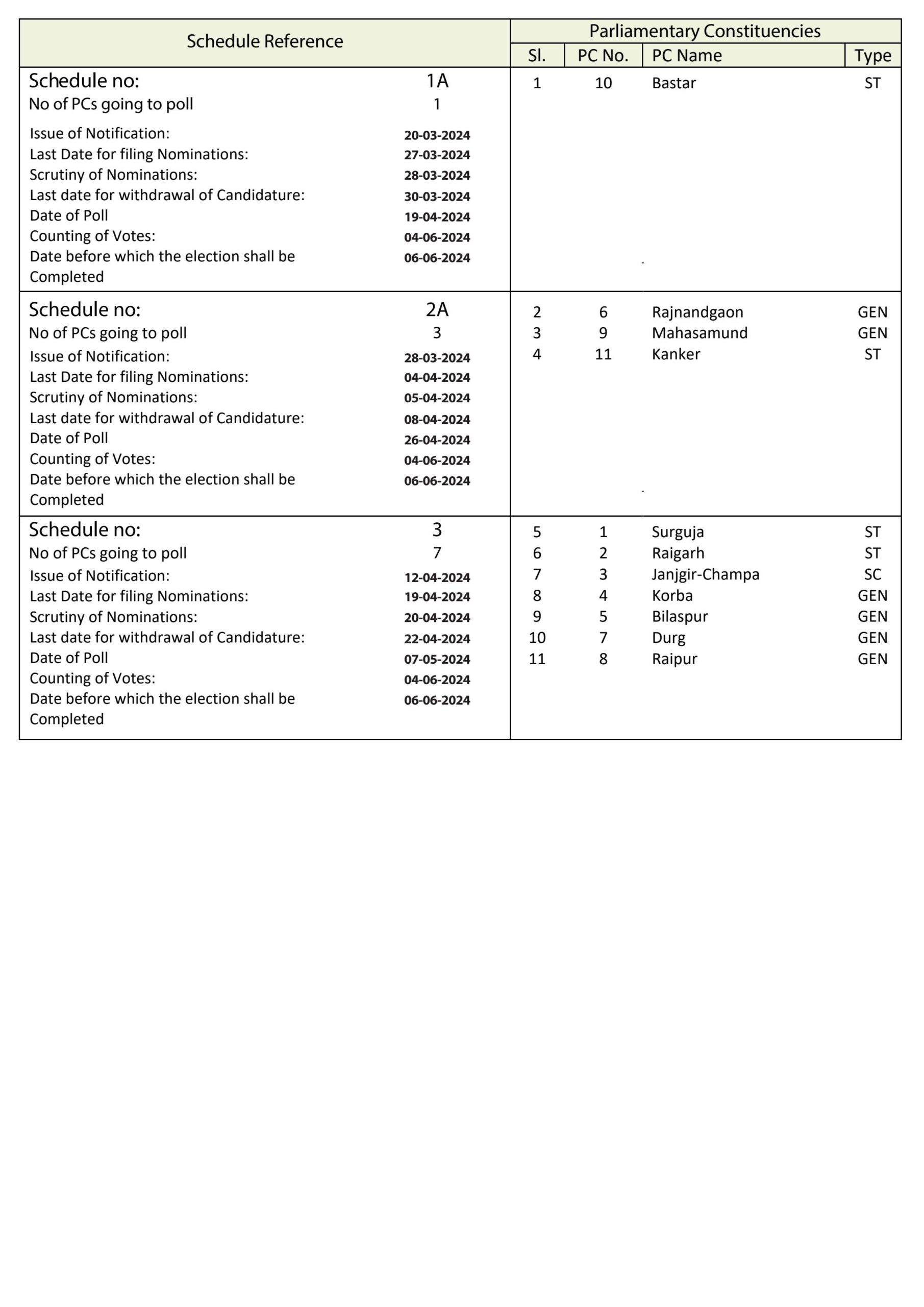 छत्तीसगढ़ में 3 चरणों में होगा मतदान। 19 और 26 अप्रैल और 7 मई 2024 को, 4 जून को कॉन्टिंग होगा।