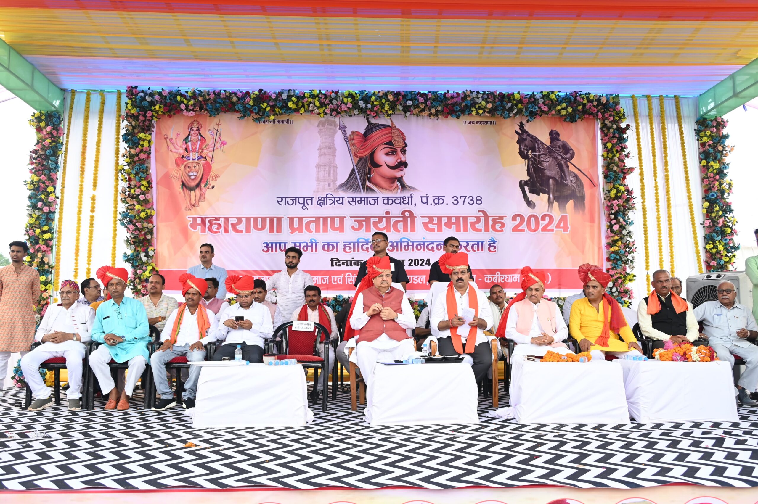 समारोह के मुख्य अतिथि विधानसभा अध्यक्ष डॉ. रमन सिंह थे। उप-मुख्यमंत्री श्री विजय शर्मा ने समारोह की अध्यक्षता की। अपने उद्बोधन में श्री शर्मा ने स्थानीय क्षत्रिय समाज की ओर से प्रस्तुत सभी मांग पत्रों को स्वीकार करते हुए और सभी मांगों के लिए अपनी हामी देते हुए कहा कि यह समाज सनातनी परंपरा और मान बिंदुओं के लिए प्राण लगा देने वाला समाज है। जब जब भी सनातनी समाज में कोई परेशानी होती है, तब तब इस समाज के नौजवान महाराणा प्रताप जी को याद करते हुए समाज की सेवा में उपस्थित हो जाते हैं। श्री शर्मा ने कहा कि महाराणा प्रताप हम सबके आदर्श हैं, आराध्य हैं, देवता समान हैं। द्वंद्व कहां तक पाला जाए, युद्ध कहां तक टाला जाए, तू भी राणा का वंशज, फेंक जहां तक भाला जाए। इन पंक्तियों के साथ उप-मुख्यमंत्री श्री शर्मा ने सभा में गर्वित भावों की तरंगें बिखेर दीं। समारोह में श्री सियाराम साहू, श्री अशोक साहू, श्री अशोक ठाकुर सहित सामाजिक महिला, पुरुष बड़ी संख्या में उपस्थित रहे।