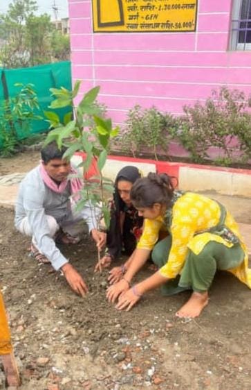 प्रधानमंत्री आवास एव प्रधानमंत्री जनमन योजना अंतर्गत निर्मित आवासों में रोपे गए पौधे।