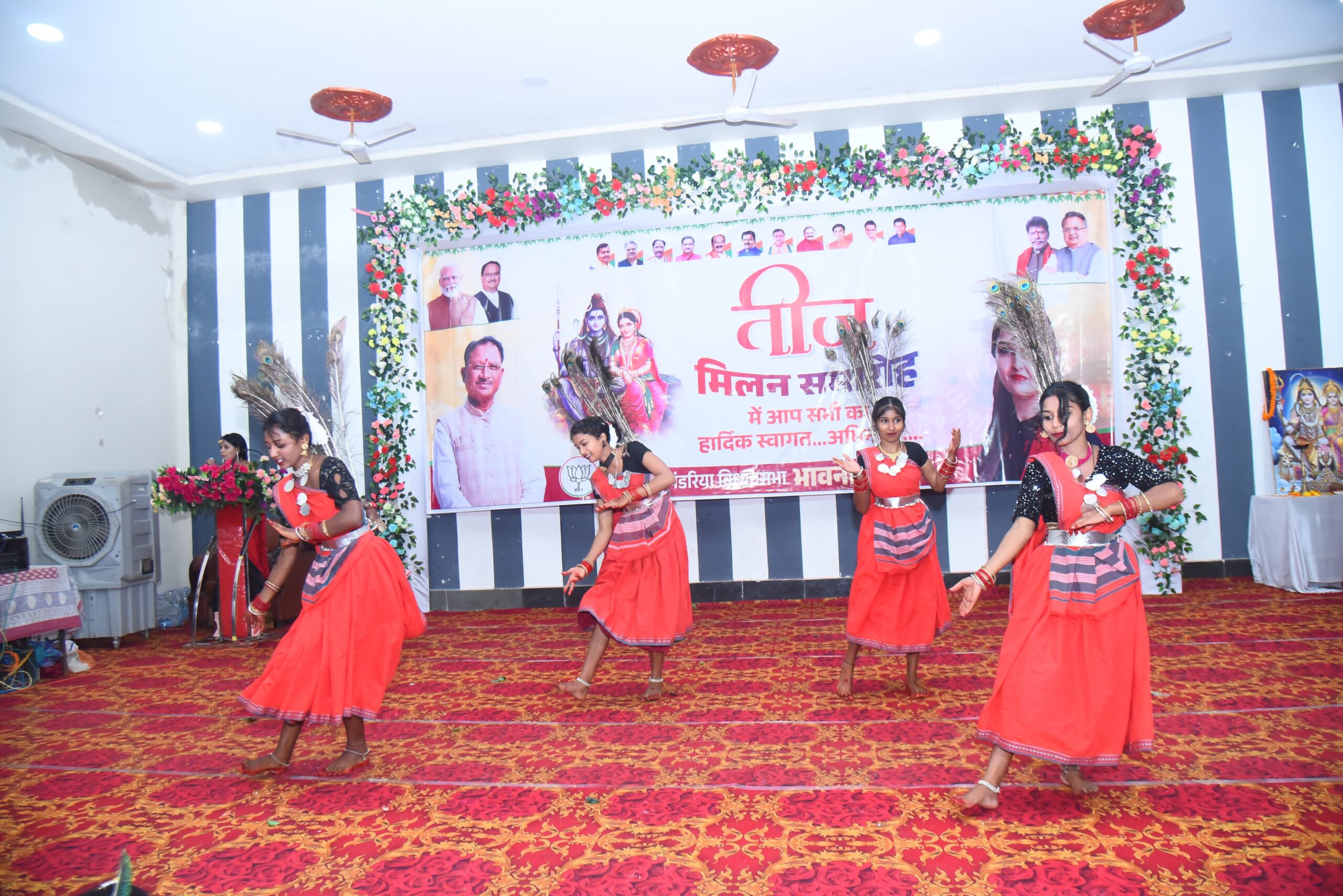 पंडरिया विधायक भावना बोहरा द्वारा बुधवार को सामुदायिक भवन, पंडरिया में तीज मिलन समारोह का आयोजन किया गया जिसमें क्षेत्र की 1500 से अधिक महिलाएं शामिल हुईं। कार्यक्रम में महिलाओं के मनोरंजन हेतु सामूहिक एवं एकल नृत्य प्रतियोगिता का भी आयोजन किया गया था जिसमें उन्होंने बढ़-चढ़कर हिस्सा लिया। विधायक भावना बोहरा ने प्रतियोगिता में विजयी महिलाओं को सम्मानित कर तीज पर्व की बधाई व शुभकामनाएं दी, वहीं उनके साथबड़े ही उत्साहव व विभिन्न गतिविधयों के साथ उत्सव को मनाया।