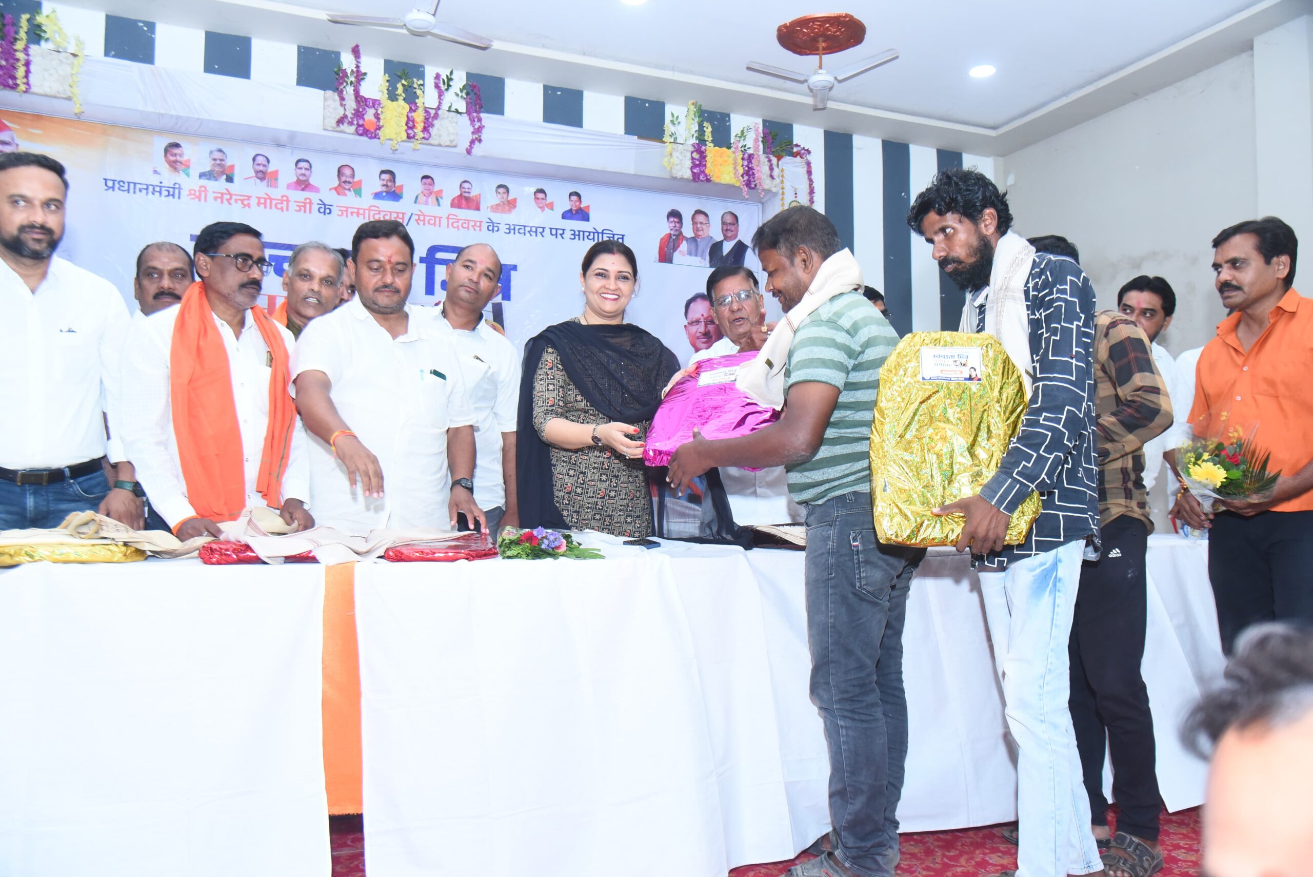 इस अवसर पर भावना बोहरा ने कहा कि सबसे पहले मैं भारत के प्रधानमंत्री श्री नरेंद्र मोदी जी को जन्मदिन की बधाई प्रेषित करती हूँ और भगवान श्रीराम से उनके सुदीर्घ एवं स्वस्थ जीवन की कामना करती हूँ, जिनके सेवाभाव से प्रेरित होकर हमने आज इस कार्यक्रम का आयोजन किया है। प्रधानमंत्री श्री नरेंद्र मोदी जी ने जिस प्रकार राष्ट्र सेवा सर्वप्रथम की अवधारणा के साथ देश के हर व्यक्ति, वर्ग एवं समुदाय के हित और देश के विकास के लिए निरंतर कार्य किया है वह हम सभी के लिए एक आदर्श है। एक आदर्श जनप्रतिनिधि एवं देश के प्रधान सेवक कैसा होता है, उसकी परिभाषा व जिम्मेदारियों को उन्होंने अपने व्यक्तित्व से प्रदर्शित कर हम सभी का मार्गदर्शन किया है। हमारे सफाई कर्मियों के पांव पखारकर उनके प्रति प्रधानमंत्री जी के आदरभाव ने हमें प्रेरणा दी है, जिससे हम यह कार्यक्रम आयोजित कर पाएं हैं।