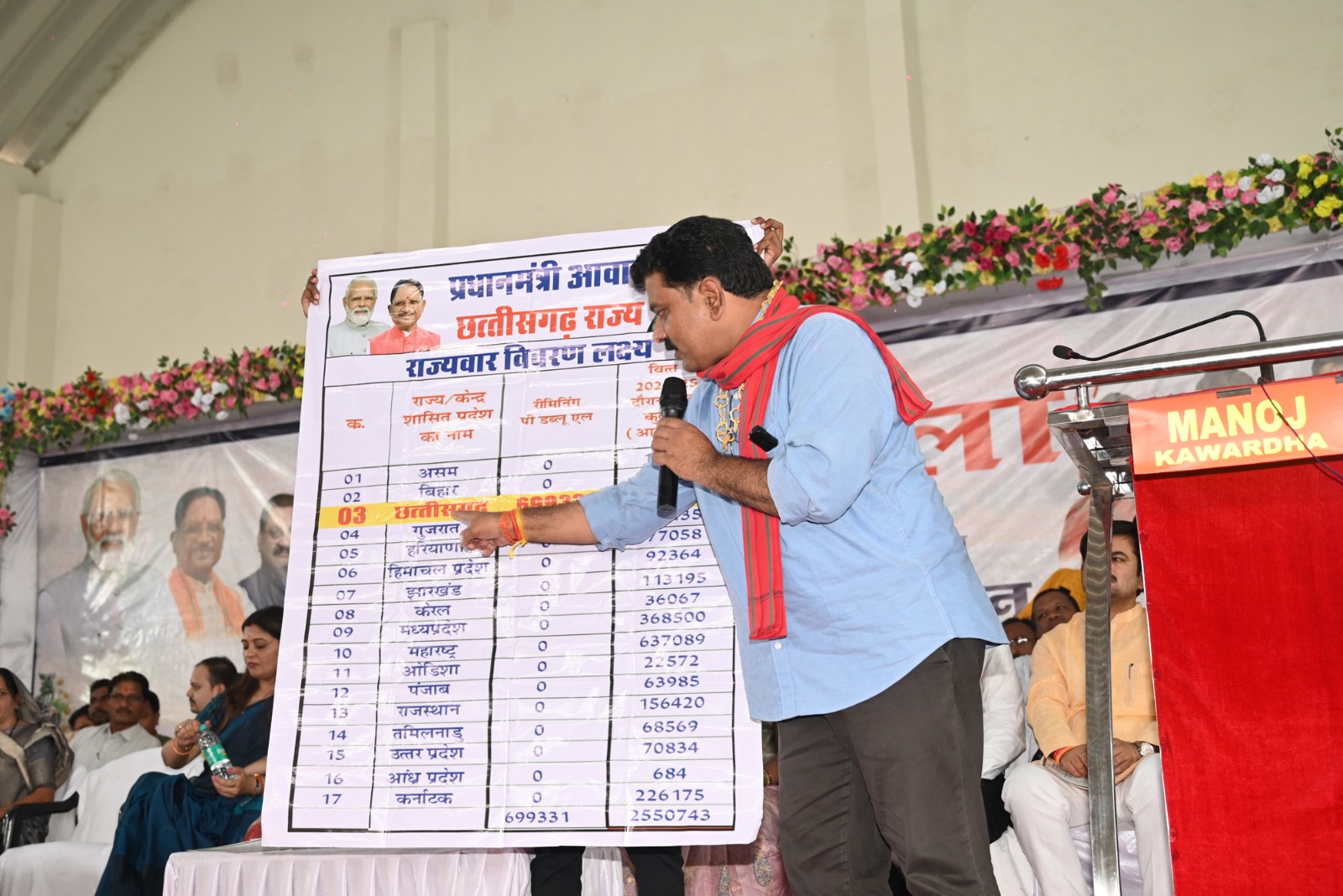 उपमुख्यमंत्री श्री विजय शर्मा ने जिले के 18 हजार से अधिक आवासहीन ग्रामीण परिवारों को स्वीकृत पत्र प्रदान किया।