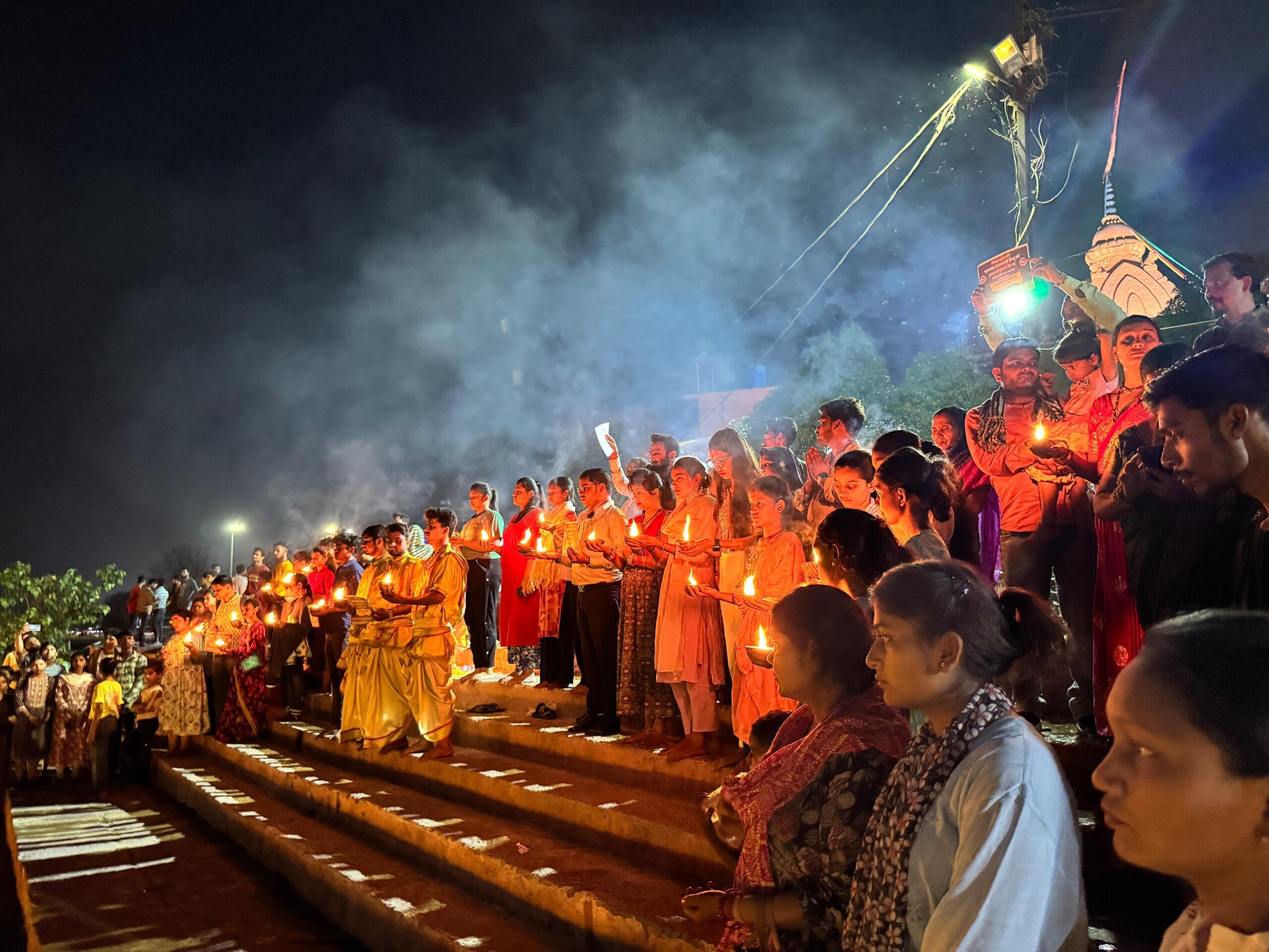 दीपदान करते समय घाट का हर कोना रोशनी से जगमगा उठा – जैसे पूरा शहर यह कहना चाह रहा हो कि “अंधेरा चाहे जितना भी गहरा हो, दीयों की लौ बुझाई नहीं जा सकती।”