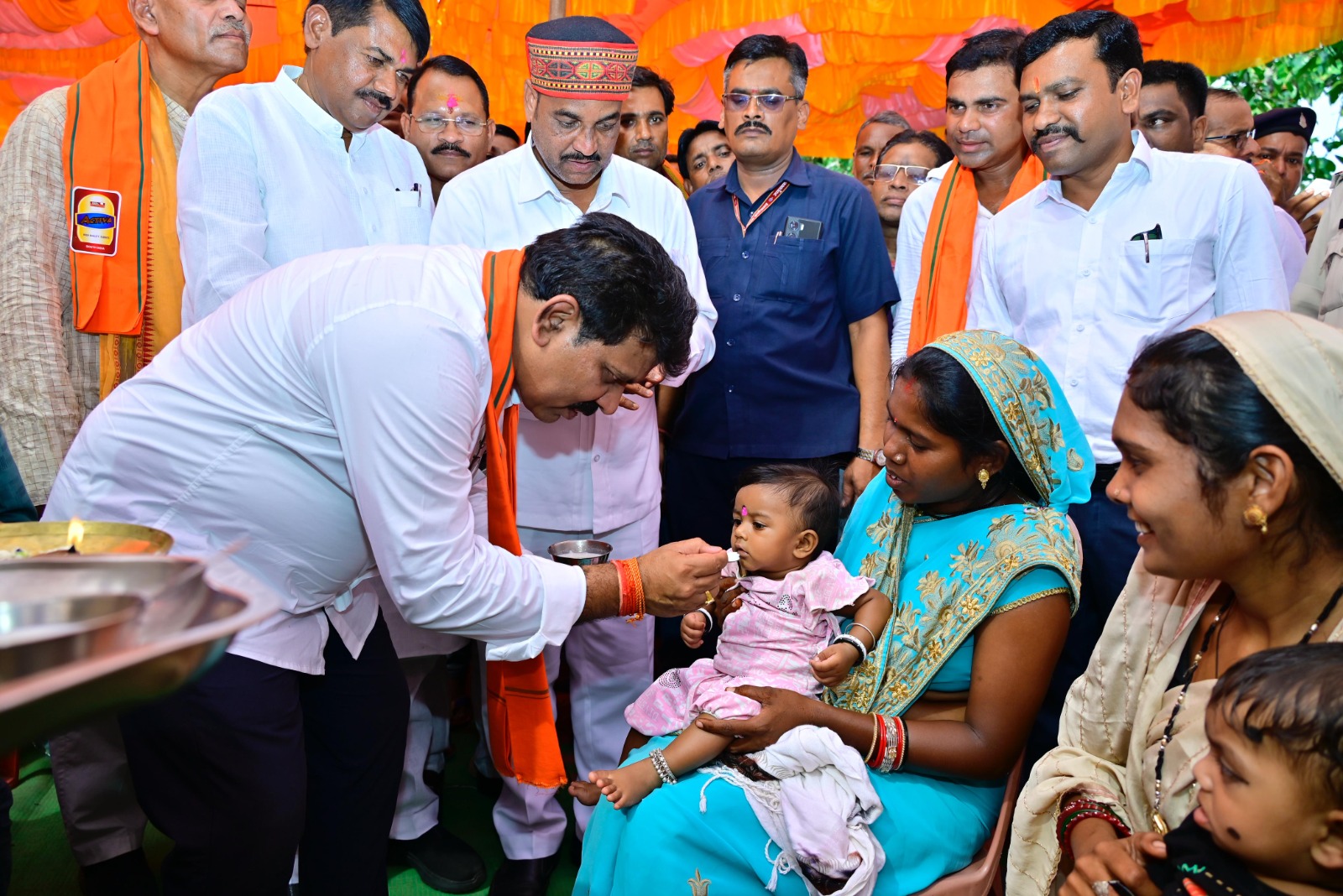 कवर्धा, 30 मई 2025। उपमुख्यमंत्री श्री विजय शर्मा आज शुक्रवार को कबीरधाम जिले के प्रवास के दौरान कवर्धा विकासखंड के ग्राम दौजरी में ‘सुशासन तिहार’ के अंतर्गत आयोजित समाधान शिविर में शामिल हुए। उपमुख्यमंत्री श्री शर्मा ने कहा कि मुख्यमंत्री श्री विष्णुदेव साय के नेतृत्व में प्रदेश में सुशासन की स्थापना हो रही है, जिसके फलस्वरूप गांव, गरीब, किसान, युवा और महिलाएं सहित सभी वर्गों का समुचित विकास सुनिश्चित किया जा रहा है। उन्होंने कहा कि प्रधानमंत्री श्री नरेंद्र मोदी की विकसित भारत की परिकल्पना को साकार करने के लिए छत्तीसगढ़ सरकार गांव से लेकर शहर तक विकास की गंगा बहा रही है। इसी क्रम में उपमुख्यमंत्री श्री शर्मा ने दौजरी समाधान शिविर में दौजरी क्लस्टर की दस ग्राम पंचायतों के समग्र विकास हेतु एक करोड़ रूपए की सौगात दी। उन्होंने बताया कि ग्राम दौजरी, बरबसपुर, नेवारी, बटरू कछार, जरदी, जेवदन, बिजाई, सोनबरसा, दबराभांठ और बोधाई कुंडा का सुनियोजित विकास किया जाएगा। इस अवसर पर उन्होंने महिला एवं बाल विकास विभाग के कार्यक्रम के तहत गर्भवती माताओं का गोदभराई तथा बच्चों का अन्नप्राशन भी कराया। समारोह में छत्तीसगढ़ कृषक कल्याण परिषद के अध्यक्ष श्री सुरेश चंद्रवंशी, जिला पंचायत अध्यक्ष श्री ईश्वरी साहू, पूर्व संसदीय सचिव डॉ. सियाराम साहू, जिला पंचायत सभापति श्री रामकुमार भट्ट, जनपद अध्यक्ष श्रीमती सुषमा बघेल, उपाध्यक्ष श्री गणेश तिवारी, कलेक्टर श्री गोपाल वर्मा, जिला पंचायत सीईओ श्री अजय त्रिपाठी सहित क्षेत्र के पंच, सरपंच एवं बड़ी संख्या में ग्रामीणजन उपस्थित थे।